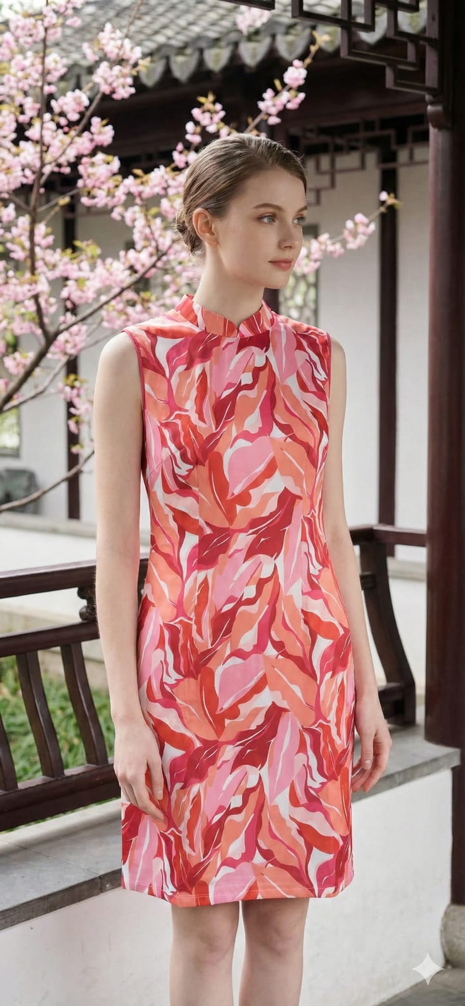 Water Paint QiPao Dress Red
